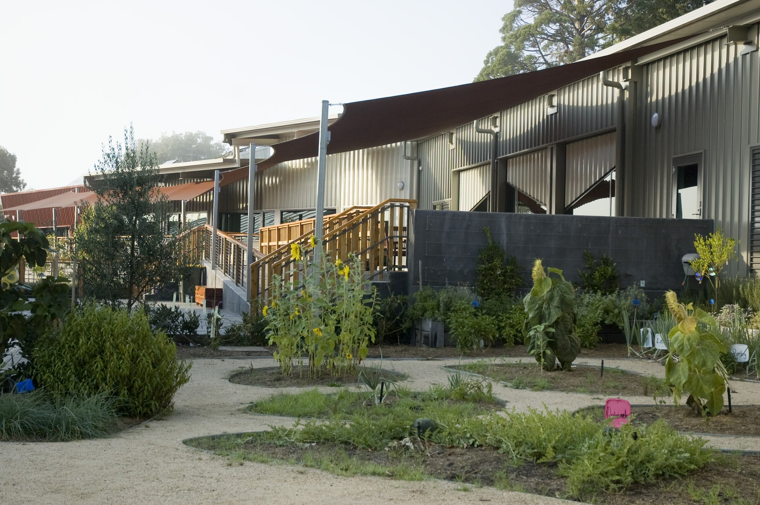 The holistic approach and inter-connectedness of the practical life program is reflected in the way the garden, alfresco dining area kitchen and service areas have been designed. Through windows, students in the kitchen are reminded of the source of the produce that they are working with. During warm weather, the indoor dining area can be opened up to join the alfresco dining courtyard, blurring the two spaces. Fabric sails provide shading for the courtyard and north facing large glazed counterweight doors